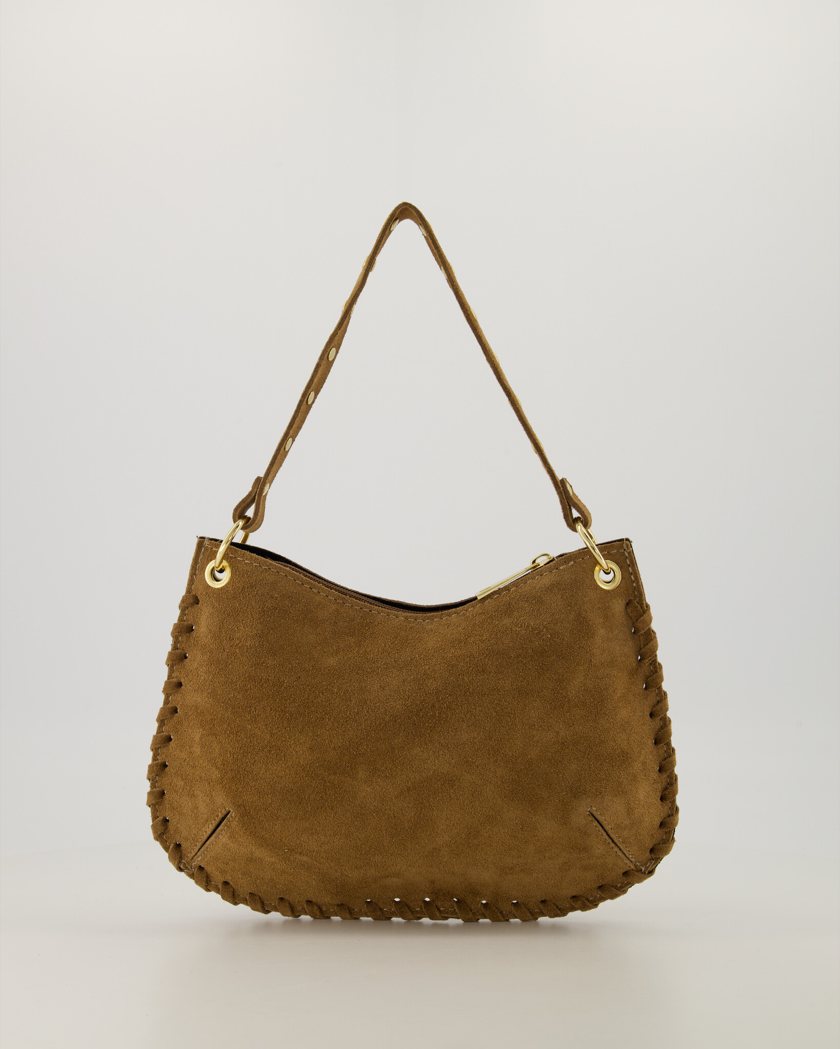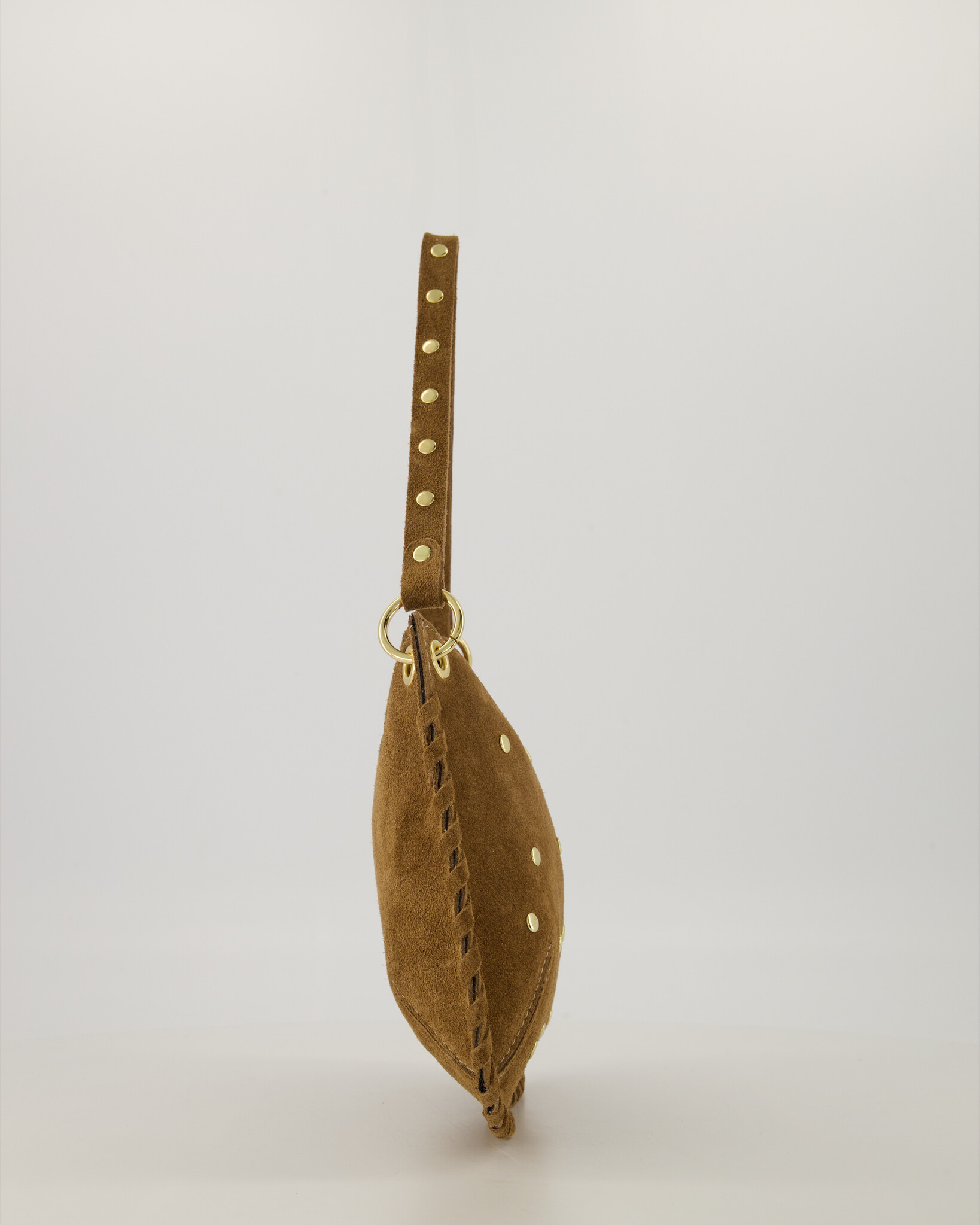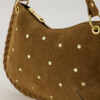 Casey suède tas met studs – leren schoudertas & crossbody met goudkleurige details.