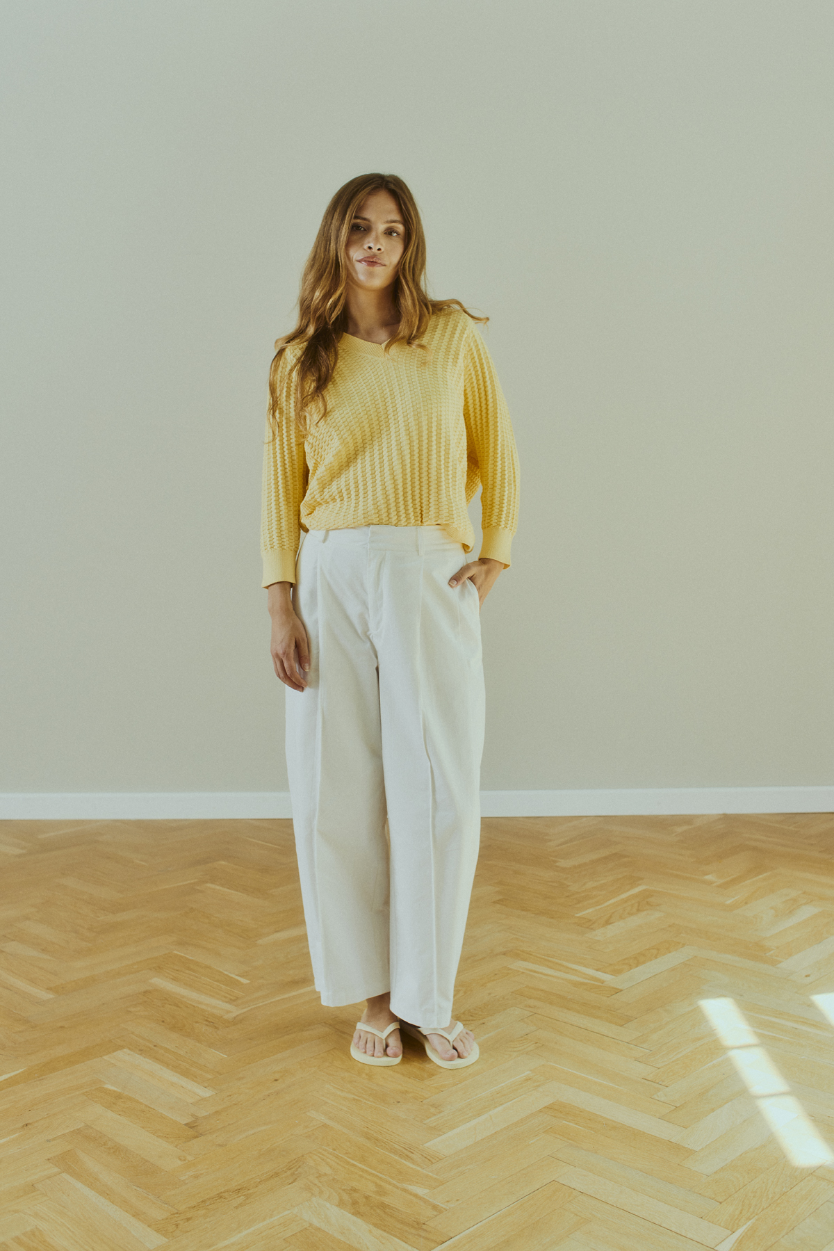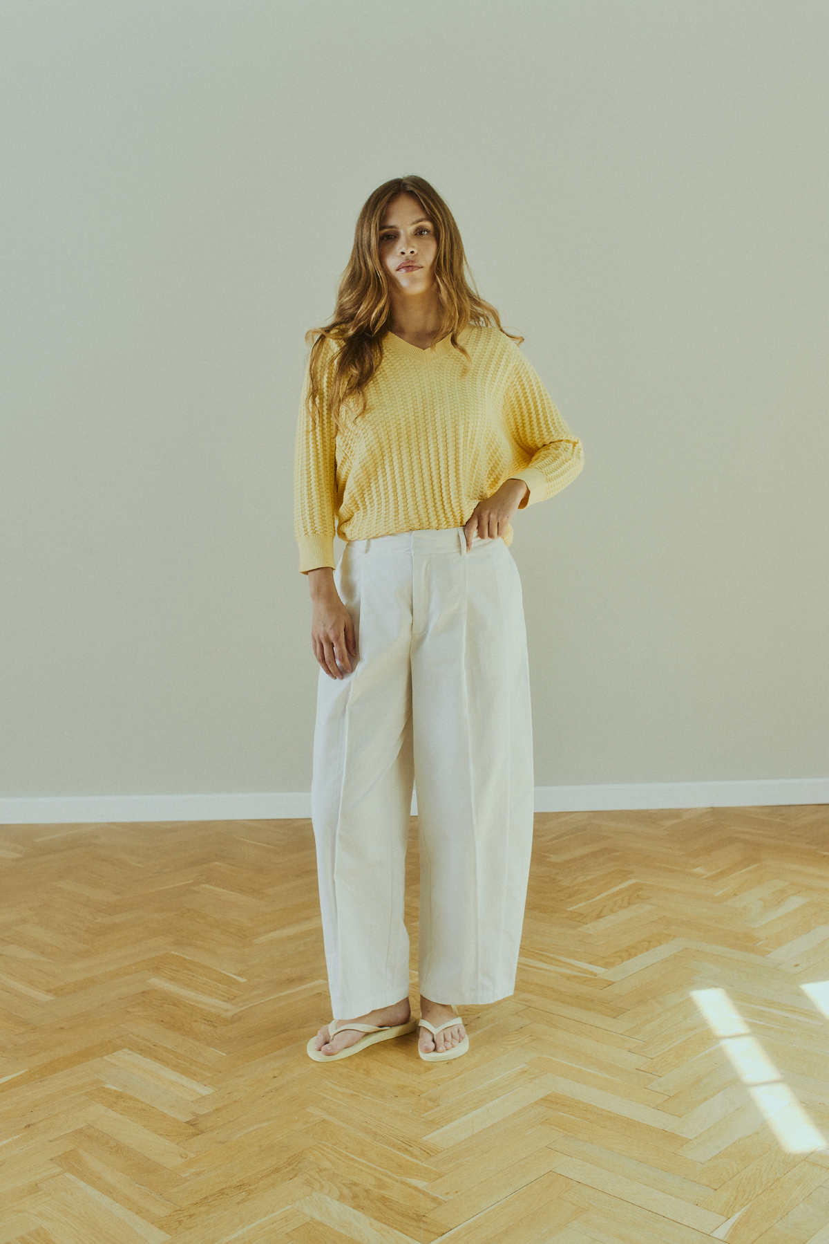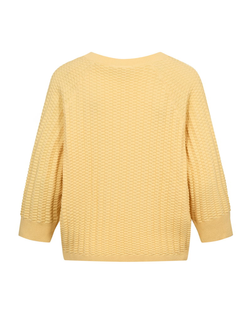Details: Structuurbreisel, V-hals en driekwartmouwen voor een speels silhouet.