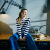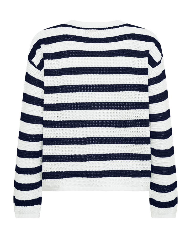 FREE/QUENT FQDODO pullover – off-white met navy strepen, loose fit damestrui van biologisch katoen.