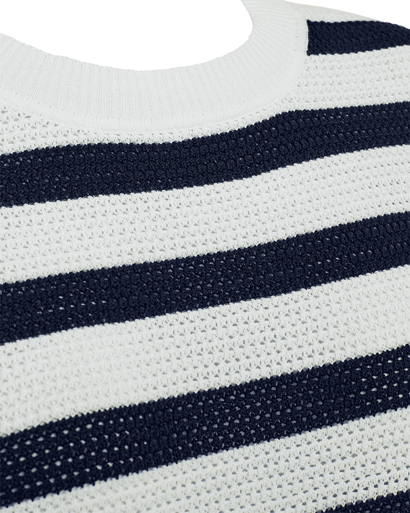 Details: Klassiek streepdessin met ronde hals en ribboorden