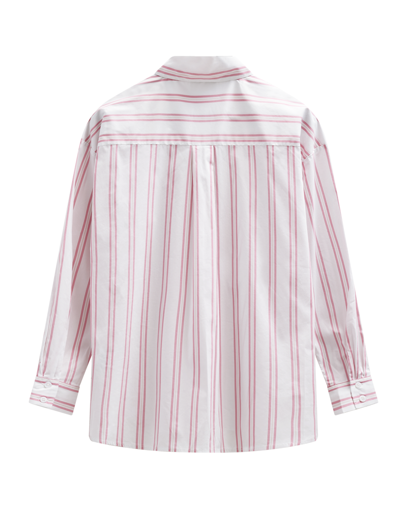 FREE/QUENT FQFINA shirt gestreept loose fit roze wit katoen stretch