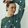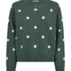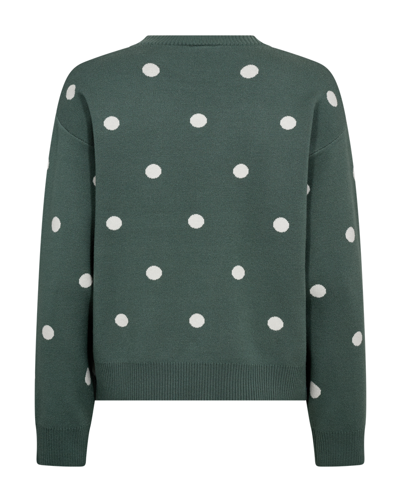Freequent FQFLOW pullover groen met stippen – zachte knit, loose fit, tijdloze trui.