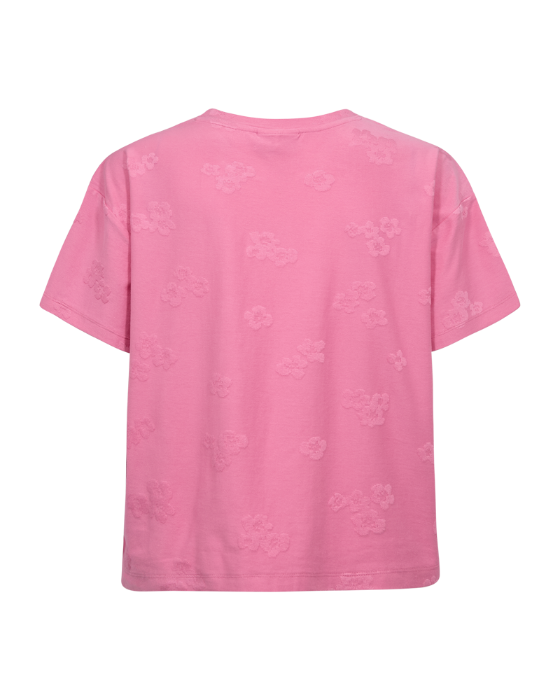 Details: All-over ingeweven bloempatroon, ronde hals, korte mouwen.