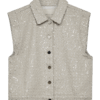 Shine alert! ✨ Dit gilet van Freequent is gemaakt van een prachtige stof vol glinsterende pailletten – perfect om je outfit net dat beetje extra te geven. Het heeft een eenvoudig, tijdloos model met knoopsluiting aan de voorkant en is mouwloos, waardoor je het makkelijk kunt combineren over een blouse, jurk of T-shirt.