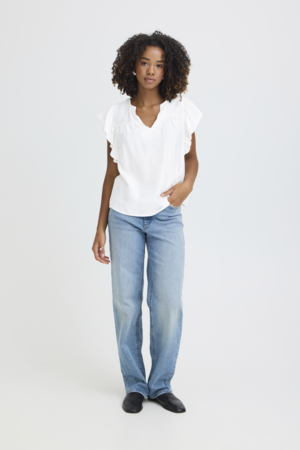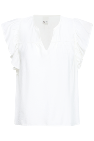 ICHI | HETTA Blouse – Luchtige ruffle blouse met V-hals | Cloud Dancer