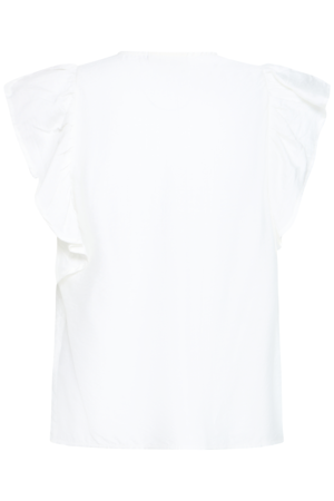 Witte blouse met ruffle-mouwen en V-hals – vooraanzichtICHI | HETTA Blouse – Luchtige ruffle blouse met V-hals | Cloud Dancer