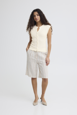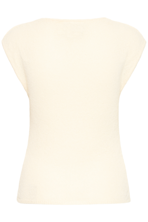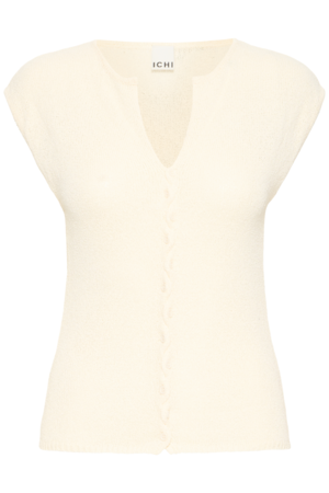 Crème dames top met knoopjes en mouwloos model. Tijdloze basic met normale pasvorm.