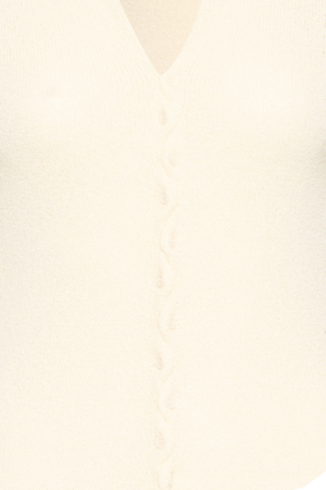 Details: Mouwloos model met knoopsluiting en subtiele structuur