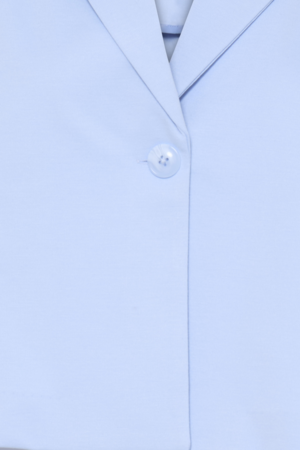 Details: Enkele knoopsluiting, reverskraag en rechte ellebooglange mouwen.