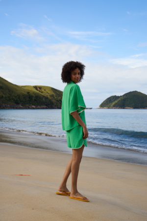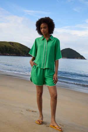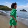 Groene dames short met elastische taille en lichte viscosemix. Perfect als zomerse co-ord set.