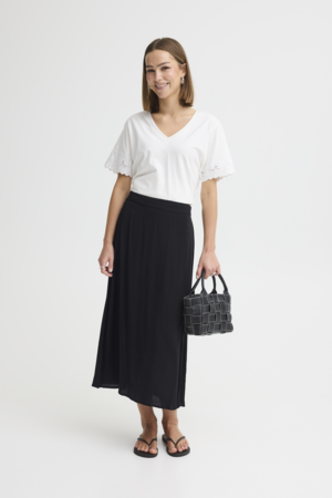 ICHI zwarte lange rok viscose – luchtige Marrakech rok met elastische taille en soepele fit.