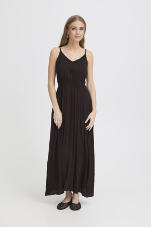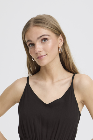 Zwarte maxi jurk viscose open rug ICHI Marrakech zomerjurk