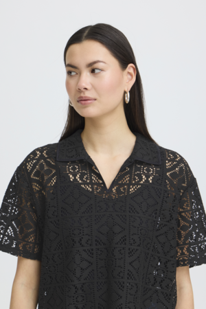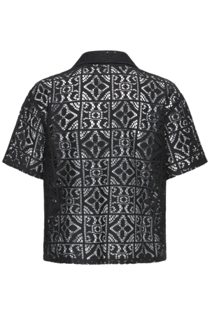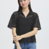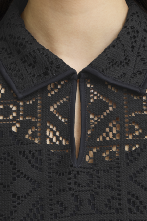 ICHI Naima lace top kopen? Luchtige zomertop met kraag, korte mouw en vrouwelijke opengewerkte structuur.