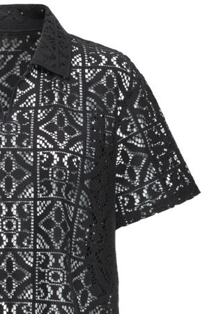 Details: Opengewerkte lace look met kraag en subtiele V-hals
