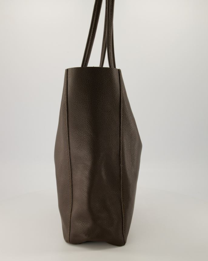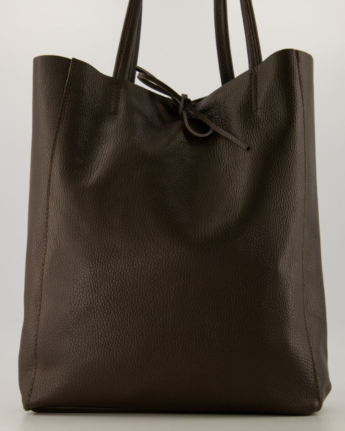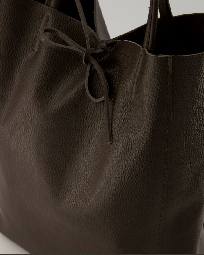 Deze soepelvallende leren shopper heeft aan de bovenkant een touwsluiting. Aan de binnenzijde zit een vakje met een ritssluiting.