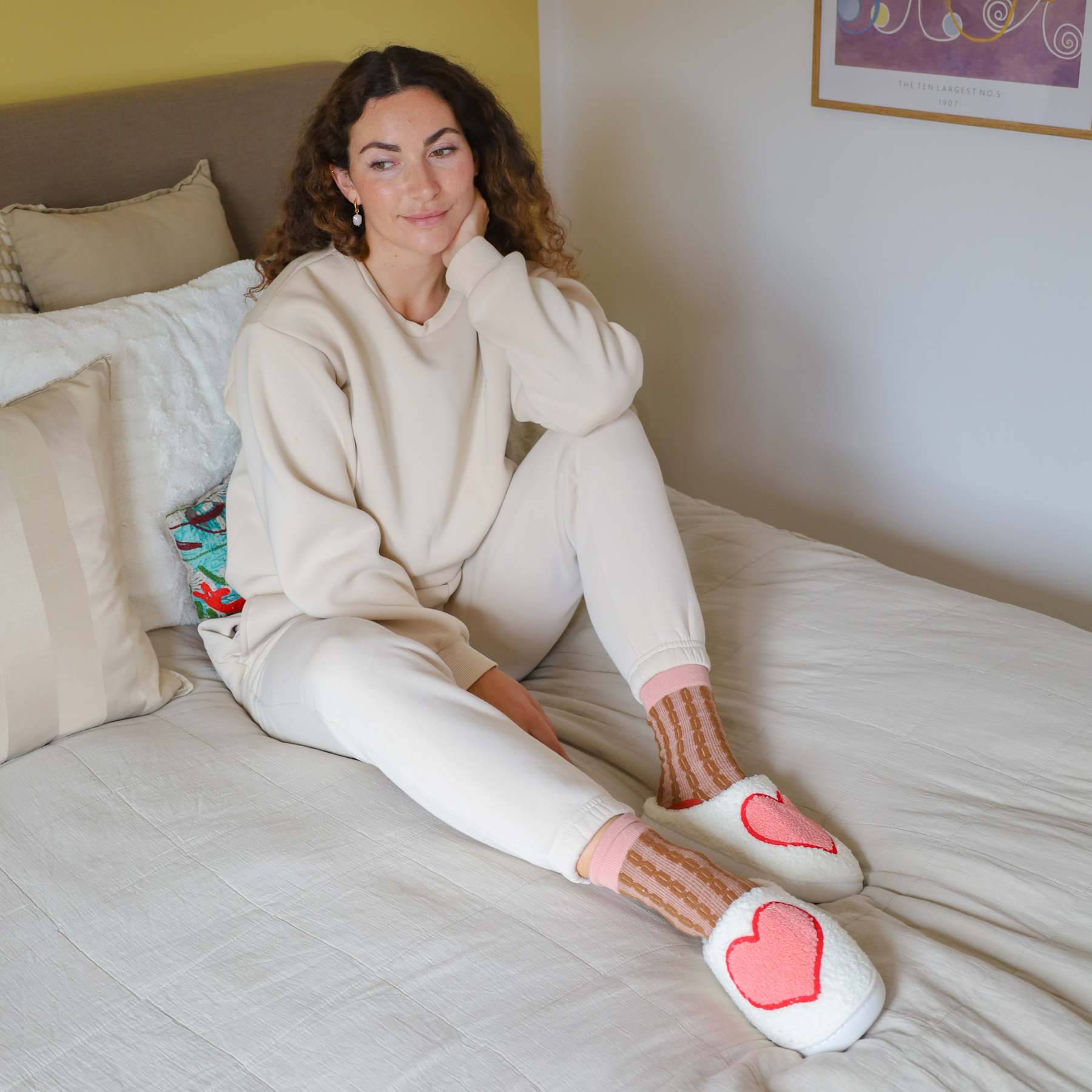 Kies jouw maat op basis van de binnenlengte en geniet elke dag van warme voeten en een vrolijke touch aan je loungewear. Perfect als cadeautje – of gewoon lekker voor jezelf. 💗