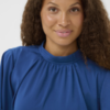 Draag deze blouse op een nette pantalon of wide leg jeans voor een rustige, vrouwelijke look. Voor werk combineer je ’m met een blazer en loafers, terwijl hij in het weekend juist mooi staat op denim met een sneaker of sandaal. Ook heel mooi onder een vest of jasje, waarbij de hoge hals subtiel zichtbaar blijft.