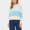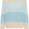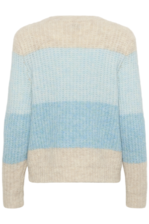 Gebreide trui met brede kleurblokken in beige, lichtblauw en hemelsblauw. Ronde hals, lange mouwen en rechte pasvorm van zachte, gestructureerde knit.