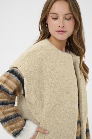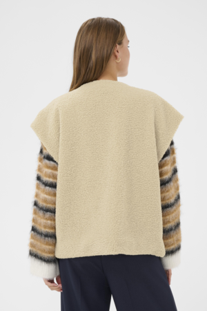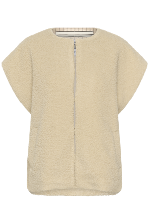 Saint Tropez gilet oatmeal – mouwloos vest met teddy structuur en open voorkant.