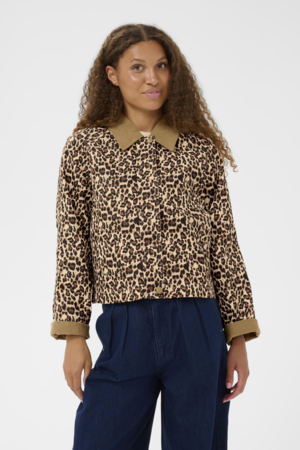 Saint Tropez OlivienneSZ jacket Black Reg Leo – kort leopard damesjasje van katoenmix, stijlvol en comfortabel.
