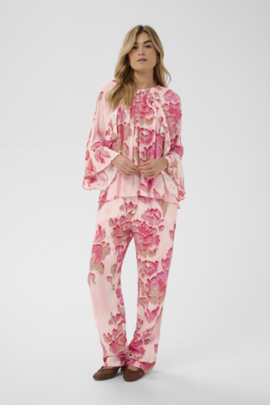 Details: Ronde hals, gelaagde ruches en wijde 3/4 mouwen