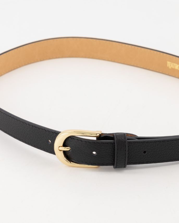De goudkleurige gesp zorgt voor een chique touch en dankzij de tijdloze vormgeving is deze riem een echte essential in jouw garderobe.